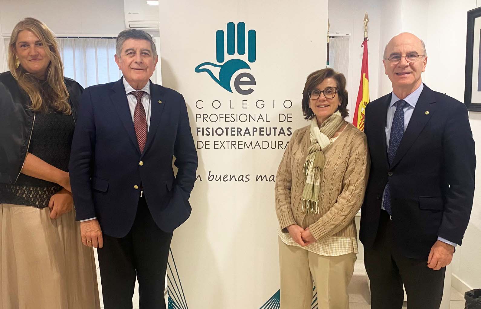 El presidente de PSN, Armando Solís, y el vicepresidente, Manuel Pérez, acompañados por la directora de la oficina de la Entidad en la capital pacense, M.ª Begoña Márquez, han mantenido distintos encuentros con los colegios profesionales de Veterinarios, Médicos y Farmacéuticos de Badajoz y Fisioterapeutas de Extremadura.